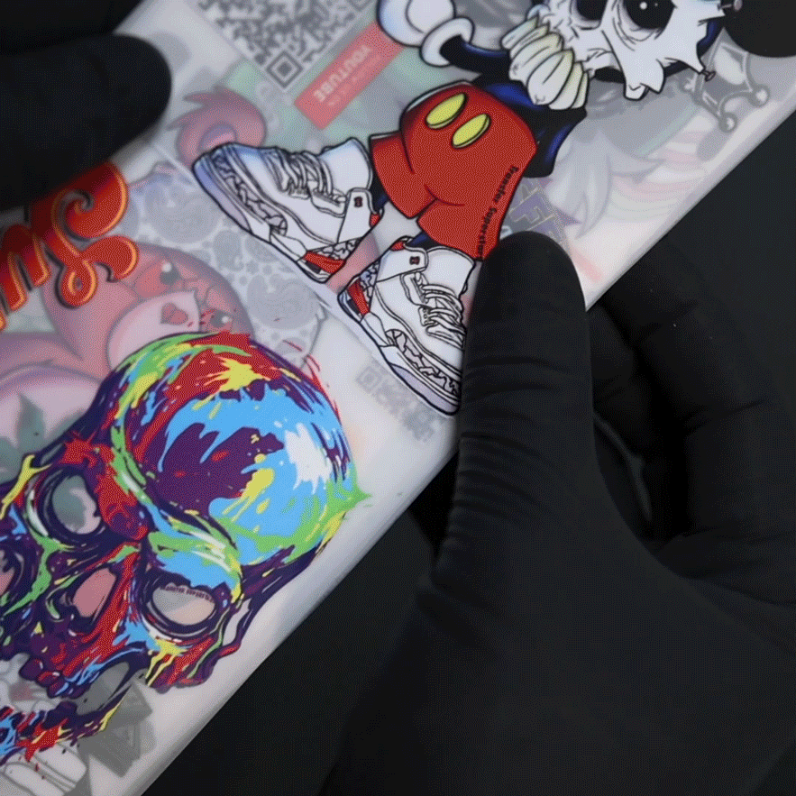 We print your full-color DTF transfer and ship it straight to your door. No weeding, no pretreatment, no setup fees.